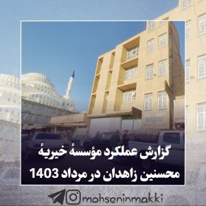 عملکرد مؤسسهٔ خیریهٔ محسنین زاهدان در مرداد 1403