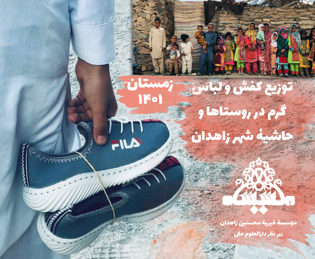 توزیع کفش و لباس گرم در روستاها و حاشیهٔ شهرستان زاهدان توسط موسسه خیریه محسنین زاهدان «شعبهٔ خدماترسانی دارالعلوم مکی »