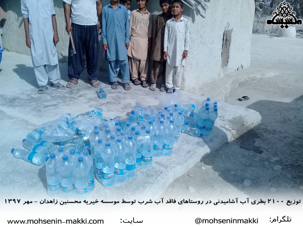 موسسه خیریه محسنین زاهدان با در نظر گرفتن این مساله اقدام به تهیه 2100 بطری آب آشامیدنی سالم و توزیع آن بین روستاییان نمود.