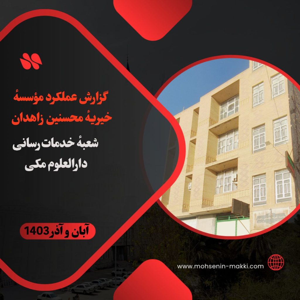 فعالیت‌ها و کمک‌های ارائه شده توسط مؤسسهٔ خیریهٔ محسنین زاهدان «شعبهٔ خدمات‌رسانی دارالعلوم مکی» در آبان و آذر 1403