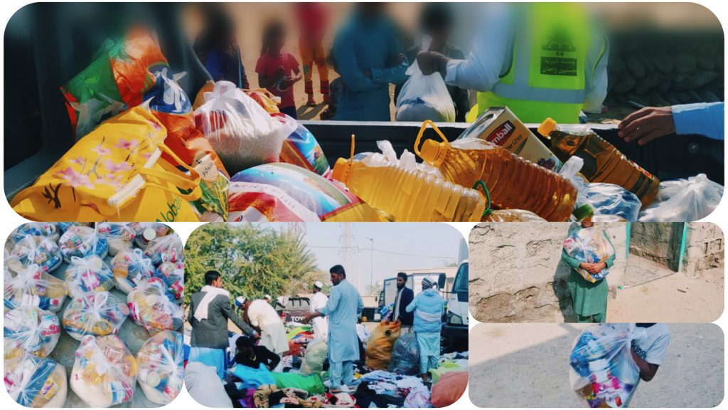 جلوههایی از توزیع کمکهای مردمی توسط اکیپ امدادرسانی مؤسسهٔ خیریهٔ محسنین زاهدان در مناطق سیلزدهٔ جنوب بلوچستان