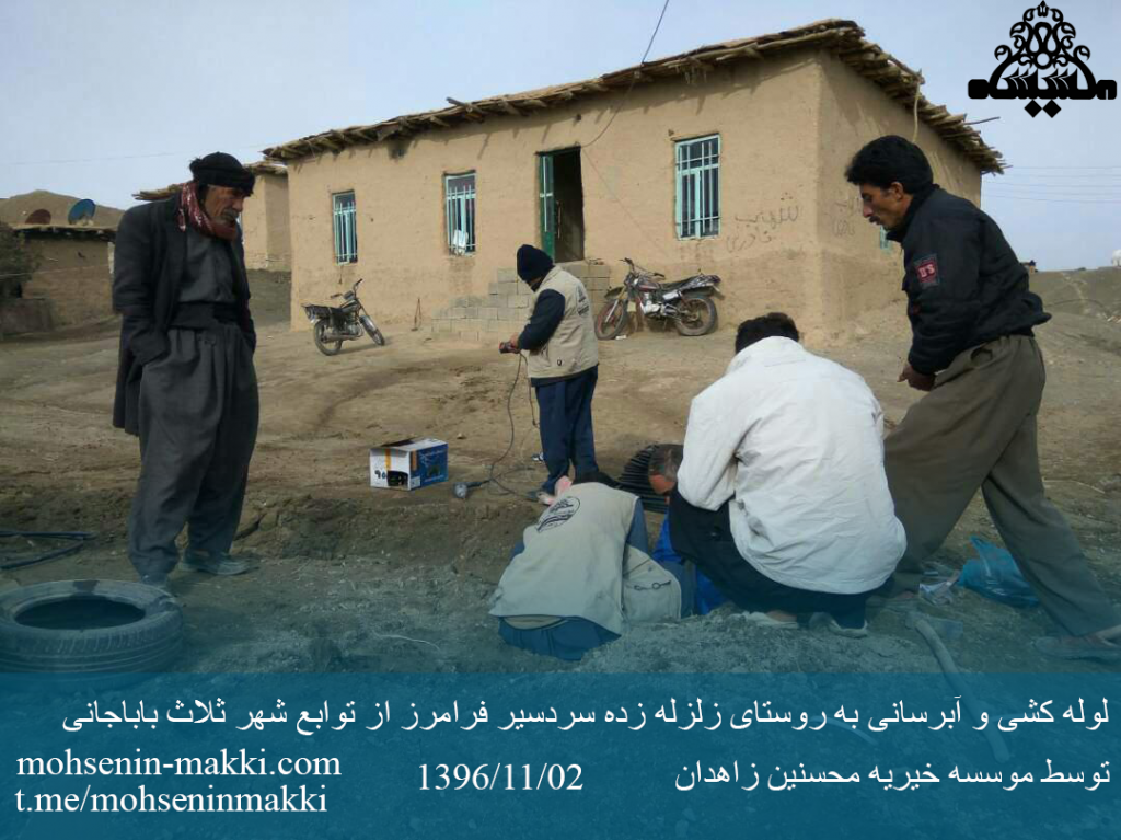 طرح لوله کشی و آبرسانی به روستای زلزله زده سردسیر فرامرز از توابع شهر ثلاث باباجانی توسط موسسه خیریه محسنین زاهدان اجرا شد.