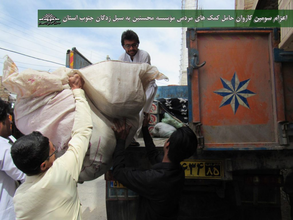 به توفیق الهی و حمایت مردم نوع دوست، سومین کاروان حامل کمک های انسان دوستانه برای مردم سیل زده منطقه زرآباد واقع در جنوب استان سیستان و بلوچستان توسط مؤسسه خیریه محسنین زاهدان ارسال شد.